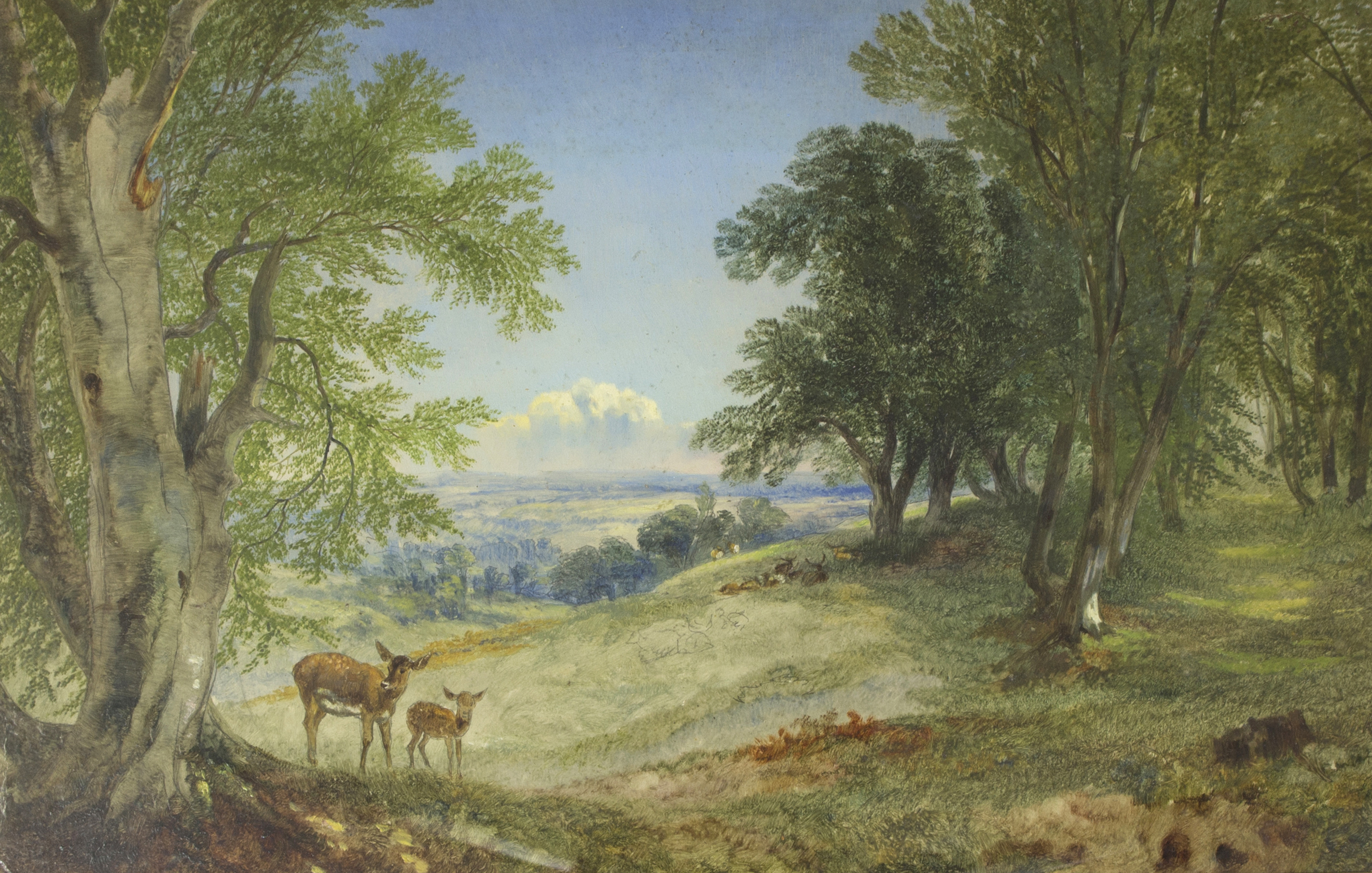 Deer Beneath Trees in Parkland