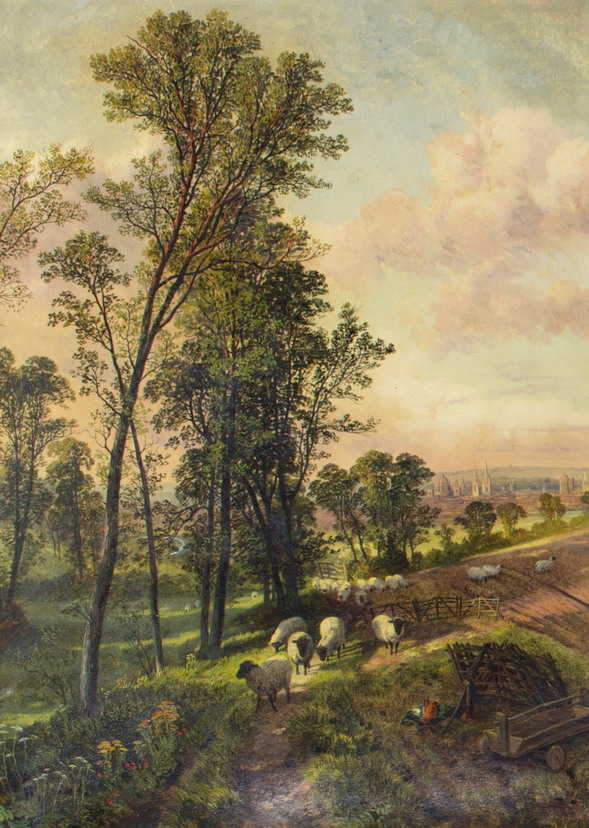 | An Old Oak Tree in a Woodland Landscape; Sheep in Pasture with Durham Beyond | |