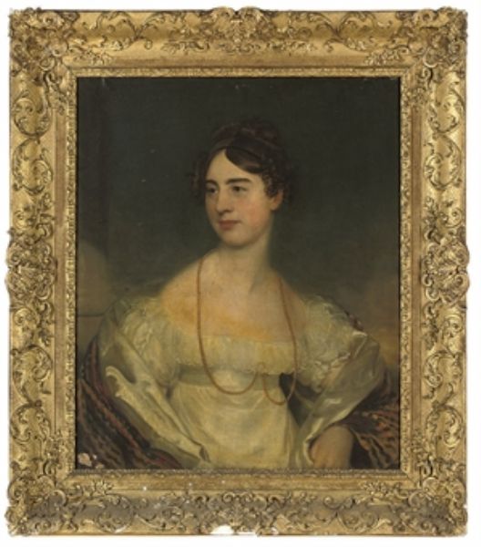 | Portrait of a lady, half-length, in a white silk and lace dress with a gold necklace | |
