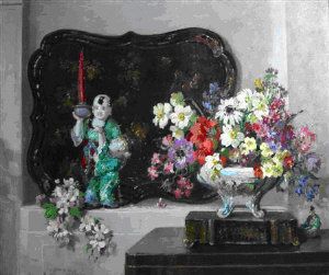 Still life with Chinese figurine and flowers