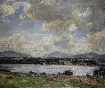 Sailboats on a Scottish Estuary,Haymaking in the Foreground