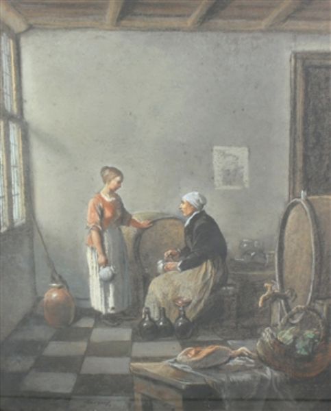 | Figures in an interior, a genre scene in the 17th century Dutch manner | |