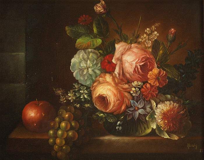 Altmeisterliches Prunkstilleben mit Blumen und Früchten