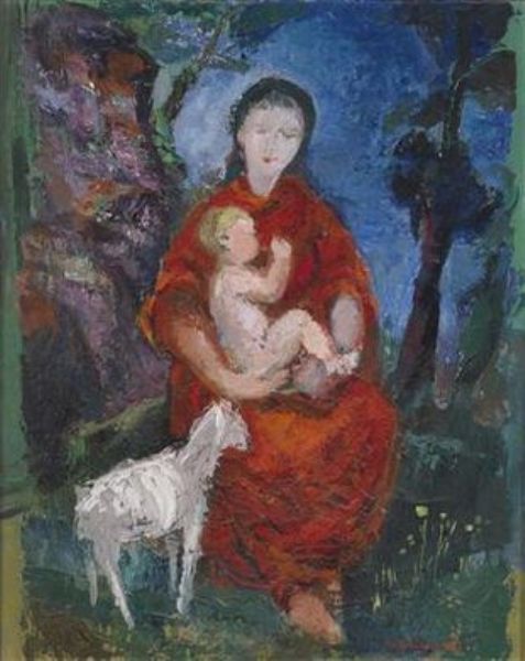 Mother with Child and Lamb in a Landscape