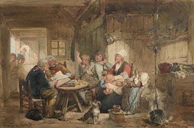 | Cottage interior with reading of the family bible | |