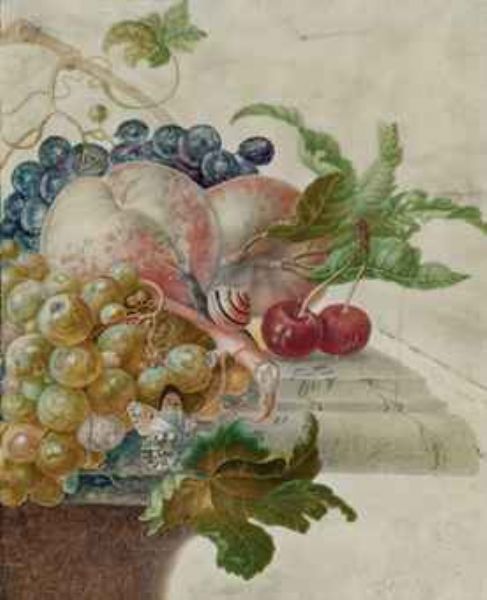 | Raisins, pêches, cerises et insectes sur un entablement; et Liserons bleus, papillons et autres fleurs sur un entablement | |