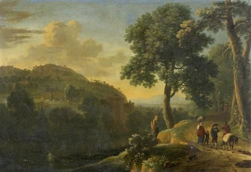 | Mediterranean landscape with figures and a donkey | |