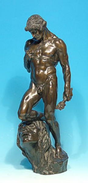 | David als Jüngling (Akt) auf Kopf des besiegten Goliath kniend | |