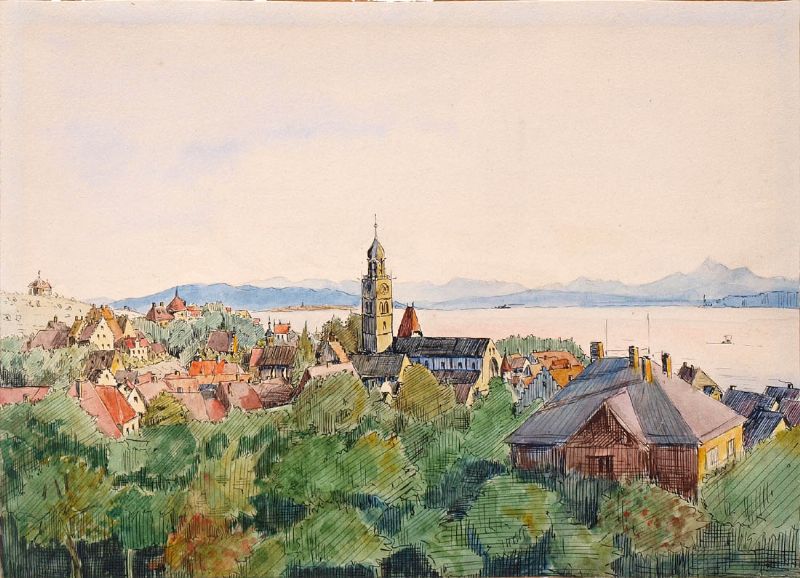 Blick auf Überlingen mit dem jenseitigen Ufer des Bodensees