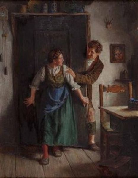 Bursch besucht das zögernde Dirndl