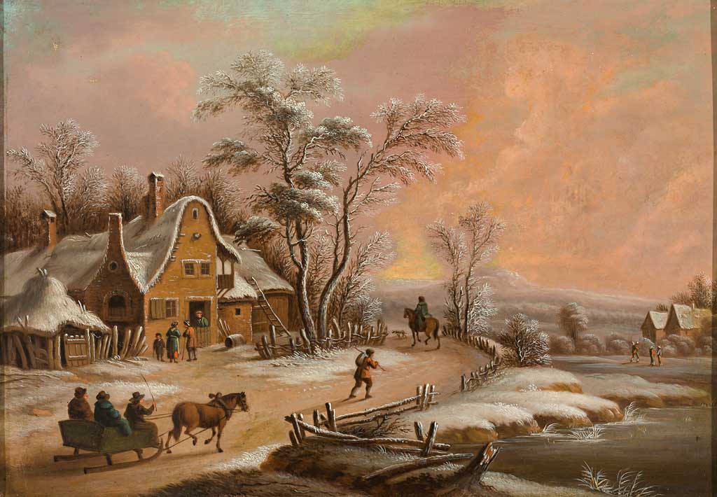 Winterlandschaft mit altem Gehöft und Personenstaffage