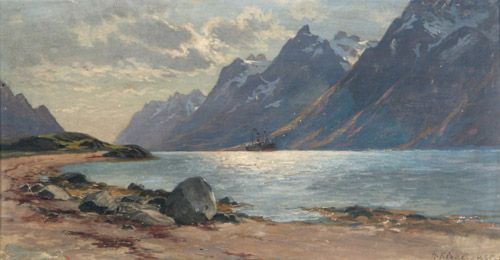 Blick auf einen Bergsee (Königssee) mit Dampfschiff