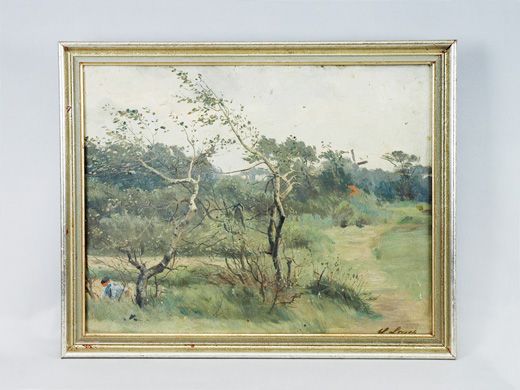 Bauer an einem Weg. Im Hintergrund Windmühle