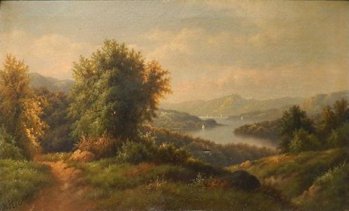 | Summer Landscape with River and Sailboats in The Distance | |
