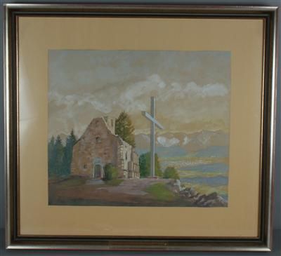 Die Kirche am Ulrichsberg mit Blick ins Klagenfurter Becken