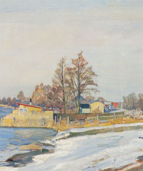 Winterliche Laubenkolonie am See