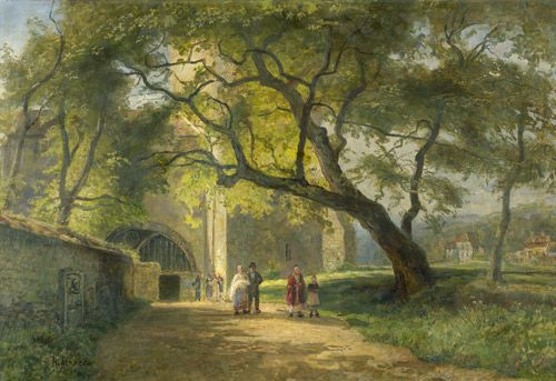 Sommerliche Taufgesellschaft vor der Klosterkir...