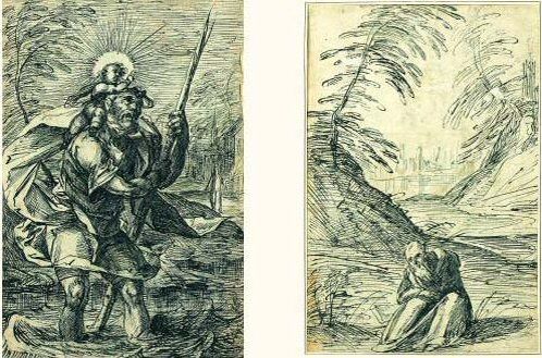 Saint Christophe (recto),Paysage avec un saint ermite (verso