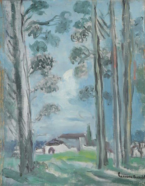 Paysage aux grands arbres.