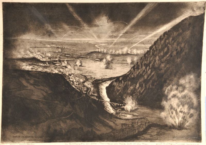 | Ein Grosskampftag am Isonzo: Trommelfeuer vom Monte Santo bis zum Meer ( nach E.A. Dussek) | |