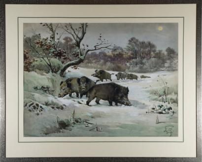 Sanglier dans une foret en hiver