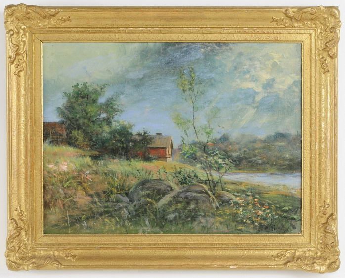 Landskap med röd stuga