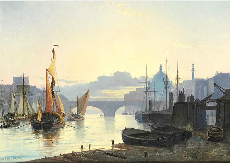 | Ships on River Thames, in the background St Paul's Cathedral, London. | |