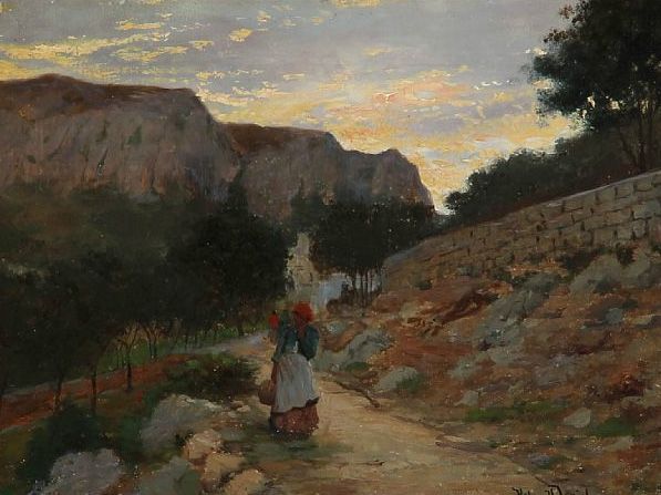 | An Italian woman on a mountain road at evening | |
