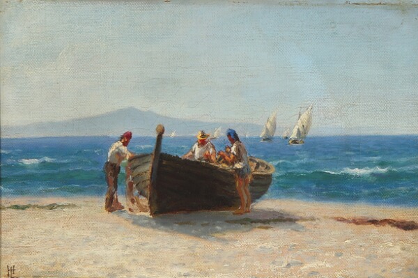 | Fishermen on the shores of Ischia with Vesuvius in the background | |