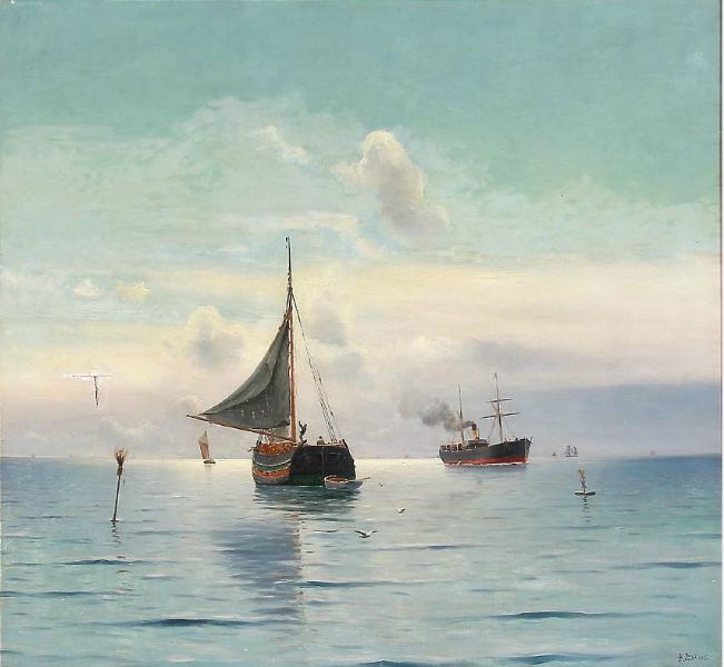 Seascape with ships in quiet weather