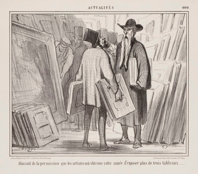 | Abusant de la permission que les artistes ont obtenue cette année d’exposer plus de trois tableaux… (Actualités, pl. 409). | |