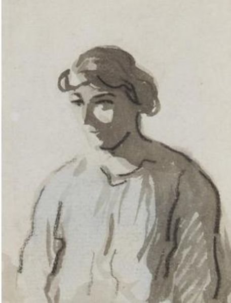 Chalk with grey and blue wash on paper
