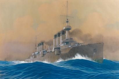 Nommé peintre officiel de la Marine en 1917 Cuirassé