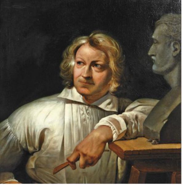 | Portrait du sculpteur Bertel Thorvaldsen accoudé devant le buste de Vernet | |
