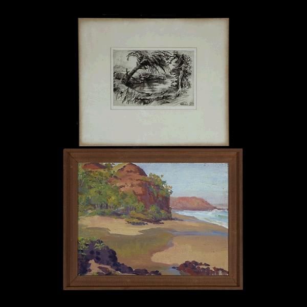 | Etching together with Attributed to Horatio Nelson Poole oil painting. Californian, 1883 - 1949 | |