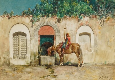 HORSEMAN AT A FOUNTAIN