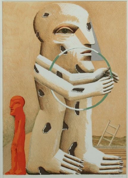 | Große Figur mit Reifen und kleiner roter Figur | |