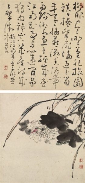 | Ink A pair of hanging scrolls, ink and colour on paper | |