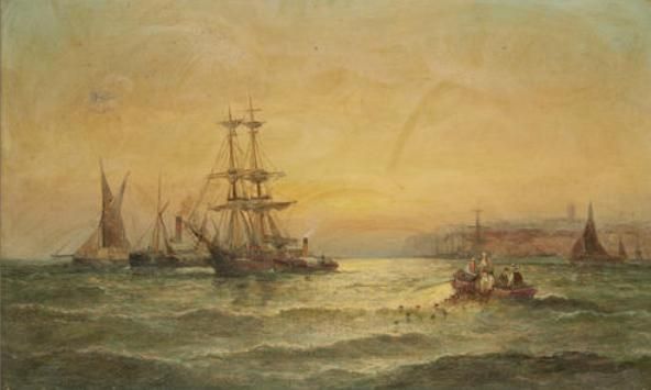 Sunset, Collier Brig; Outward Bound Fishing Boats, a pair