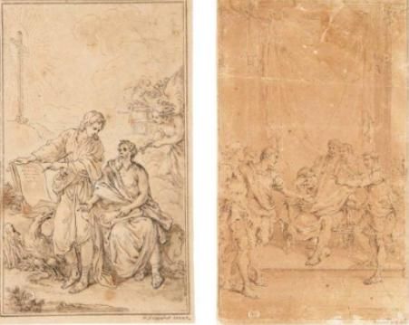 Deux projets d'illustrations: scène d'histoire, saint Jean et Moïse