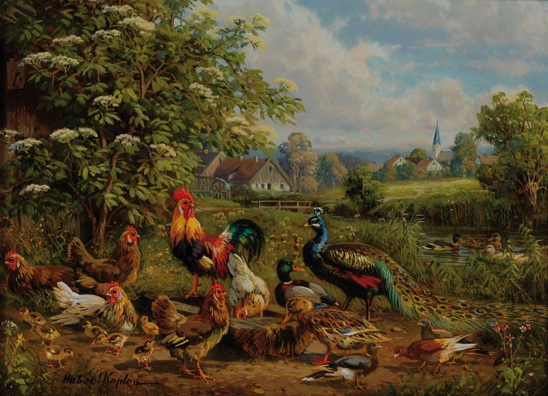 Studium an der Akademie München, Hühnerhof mit Pfau