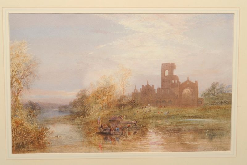 View of Kirkstall Abbey, with figures in boats on the River Aire in the foreground