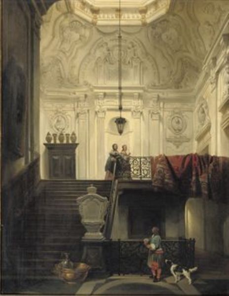 | Elegant figures in interior of Huis Schuylenburch, The Hague | |