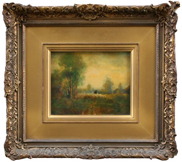 | Sheepherder and Flock in a Tonalist Landscape with Village Ahead | |