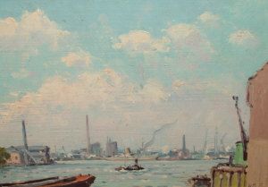 Industrial river scene with shipping