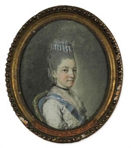 | Portrait of Madame Blanckart La Maréchale de Muys (d. 1803), head-and-shoulders, in a white dress with blue trim, and matching c | |