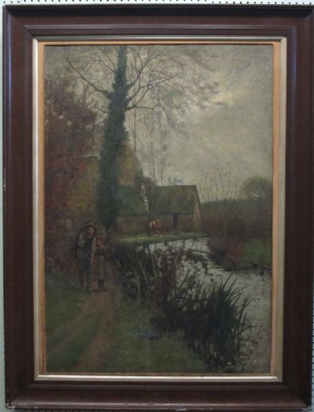 Tow Path with Buildings and Figures Walking
