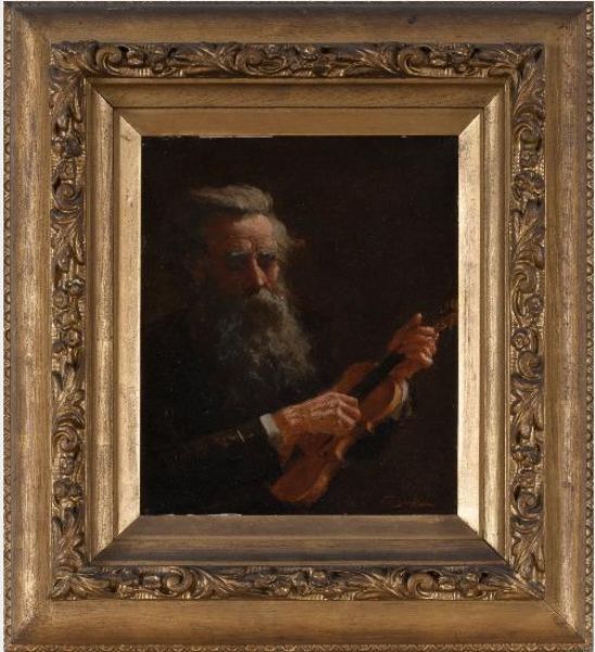 PORTRAIT OF A BEARDED MAN WITH VIOLIN.
