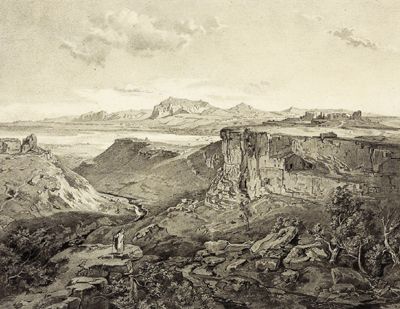 Mountainous landscape with a traveller