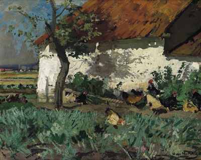 | hickens in a Farmers Garden, old titled and labeled Haus und Hühner (House and Chickens) | |